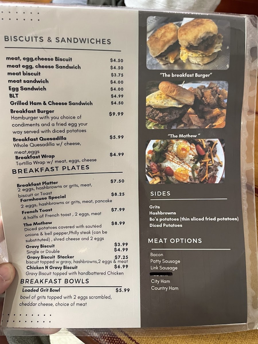 As you peruse the menu, prepare to have your taste buds tantalized by a variety of offerings that cater to every breakfast lover's craving. Start your day off right with their Breakfast Platter for just $7.50, featuring a delicious assortment of eggs, bacon, and crispy hash browns, or dive straight into the indulgent French Toast ($7.99) that's perfectly fluffy and drizzled with syrup. A fan favorite is undoubtedly The Matthew ($8.99), a mouth-watering concoction that perfectly blends flavors and textures, or if you’re in the mood for something simple yet satisfying, try their Gravy Biscuit Stacker ($7.25) that proves that Southern comfort food never goes out of style.